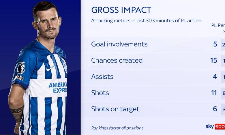 天空体育:布莱顿进攻火力让枪手紧张 格罗斯中场作用被严重低估