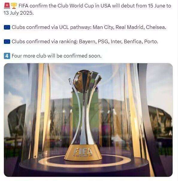 官方:2025世俱杯已确定19支参赛队伍 6月15至7月13日举