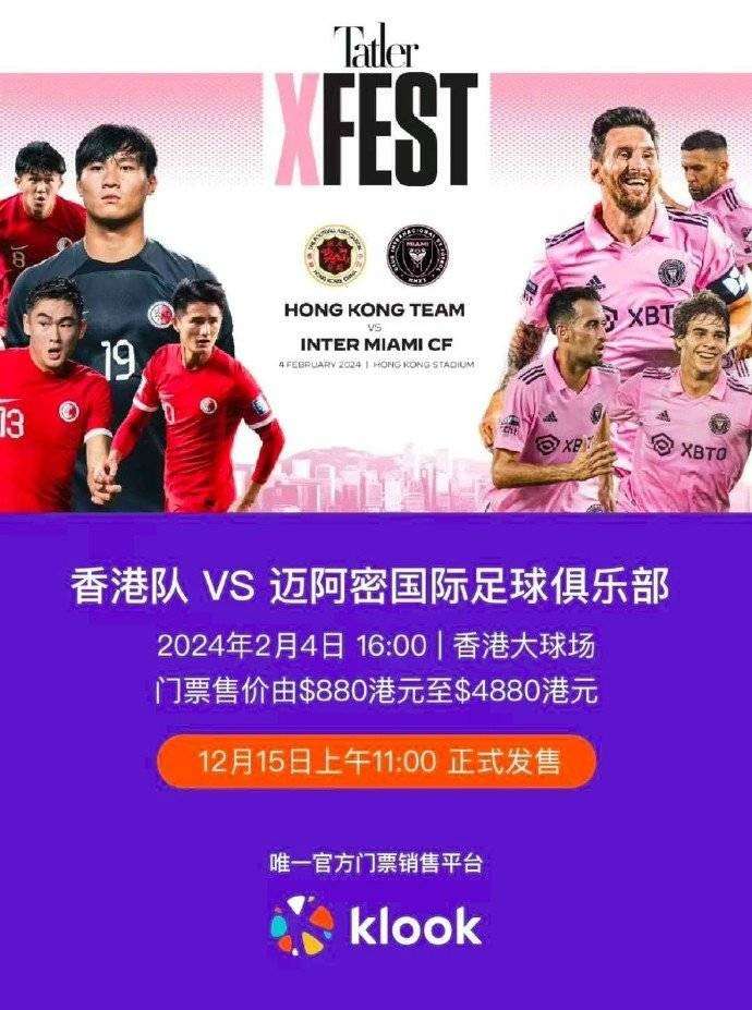 迈阿密国际vs中国香港主办方公布票价 最低档超800元人民币