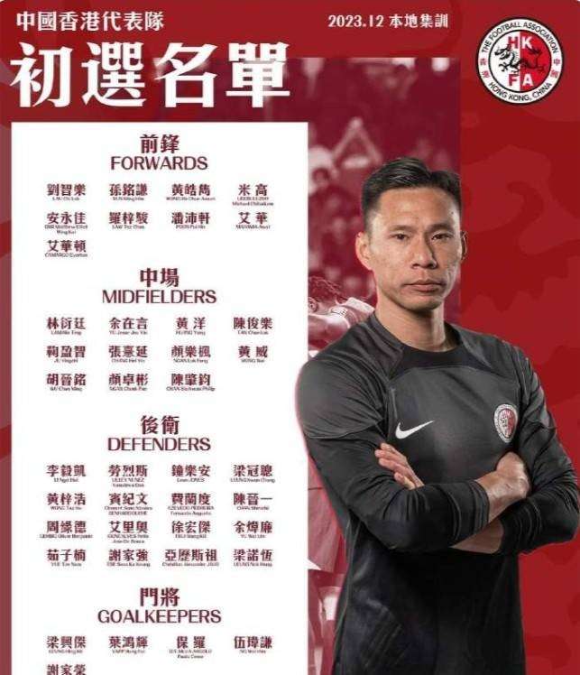 中国香港代表队亚洲杯初选名单公布:宾纪文、钟乐安在列