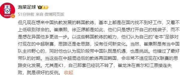 媒体人:现在想来中国执教的韩国教练只是为了赚钱