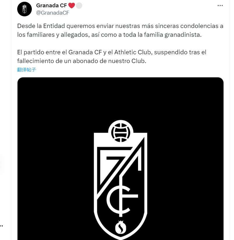 官方:球迷意外去世导致比赛中断 格拉纳达VS毕尔巴鄂一役择日重赛