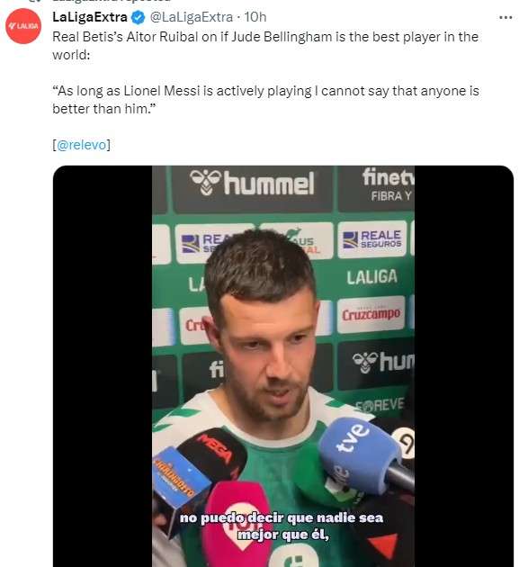 贝林厄姆是新球王?贝蒂斯球员:只要梅西还在踢球 就没有人能凌驾于