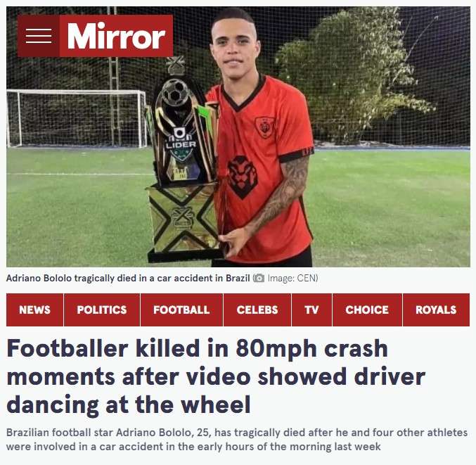 129公里时速!司机在高速驾驶时跳舞导致车祸:1名巴西球员因此丧