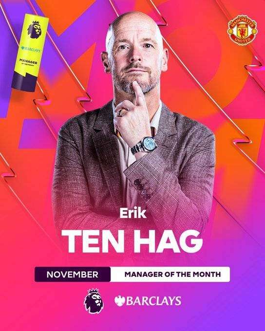 曼联11月三战全胜!滕哈赫当选英超月最佳主帅
