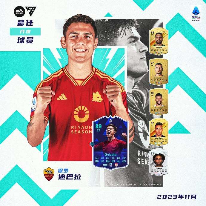 意甲官方:迪巴拉当选11月最佳球员