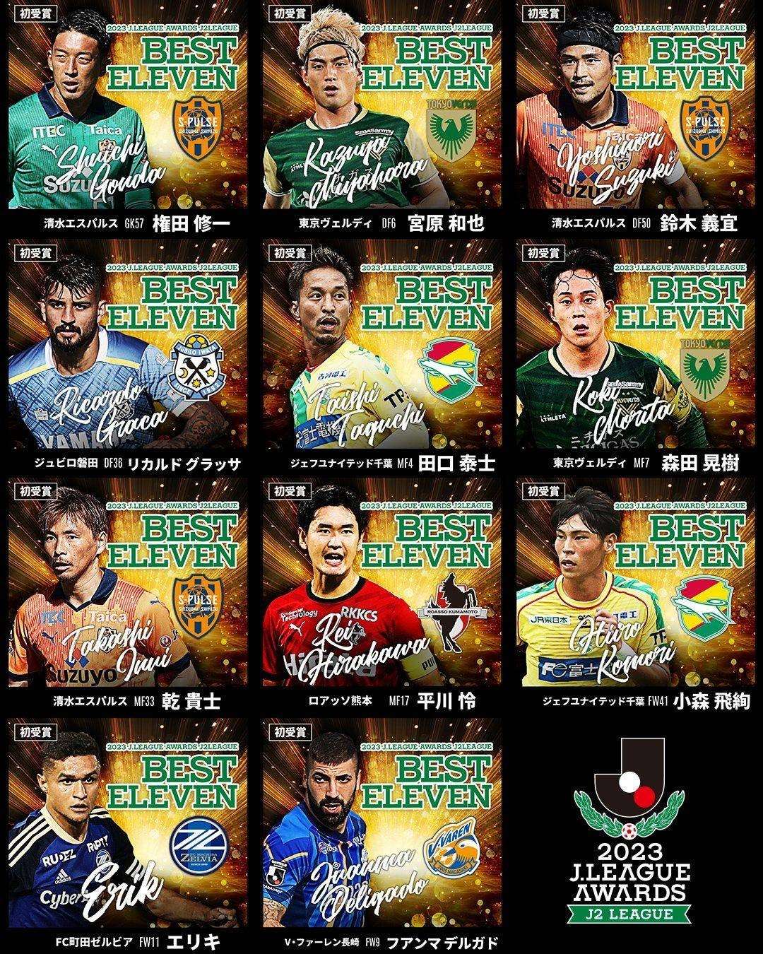 日职乙年度奖项公布:埃里克当选年度最佳球员 权田修一入选最佳11