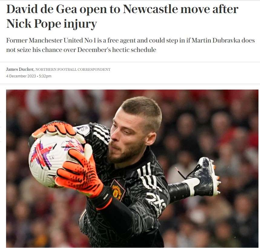 真有戏?英媒:德赫亚对加盟纽卡斯尔持开放态度