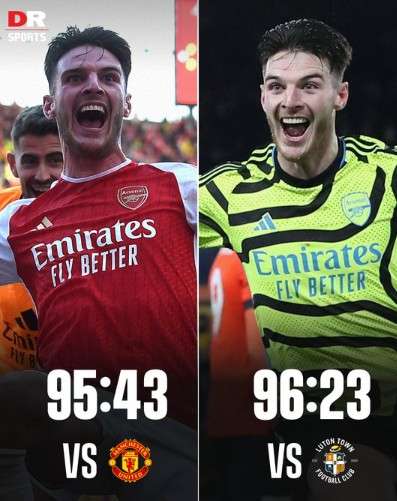赖斯本赛季已经帮助阿森纳两次绝杀对手 上一次是曼联