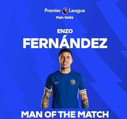 官方:恩佐当选切尔西3-2布莱顿全场最佳球员