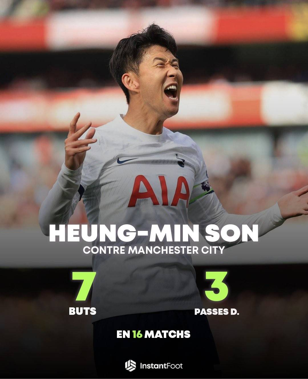 今夜能否取得进球?孙兴慜此前16次面对曼城共取得7球3助
