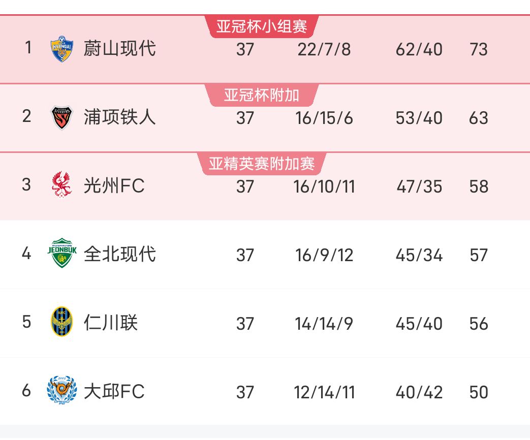 棒子大结局:总积分榜看,以下分析是建立在棒子安排全北明年打亚冠基