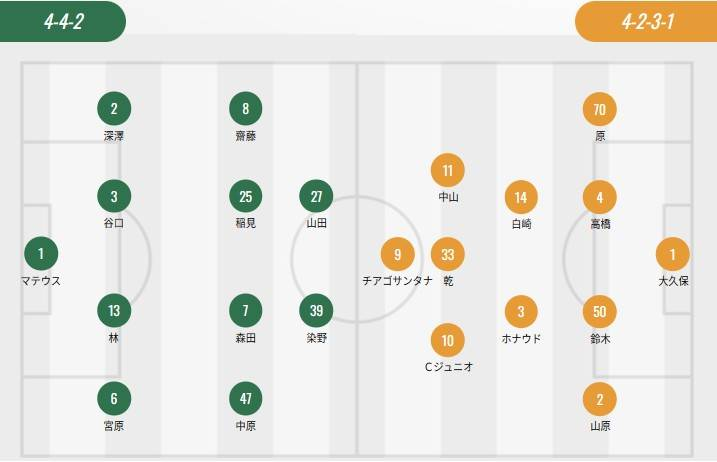 日职乙首发:绿茵单外援PK清水三外援 齋藤功佑、染野唯月先发