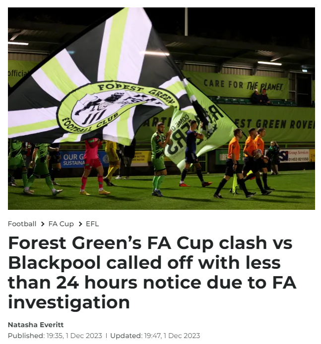 英足总对格兰森林流浪展开调查 对阵布莱克浦的足总杯比赛被迫取消