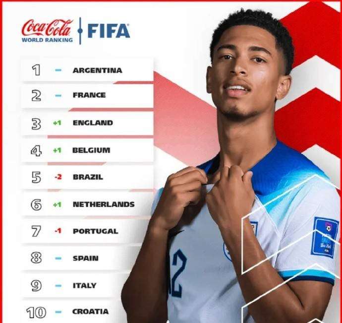 FIFA年终排名出炉:阿根廷世界第一 法国、英格兰分列二三