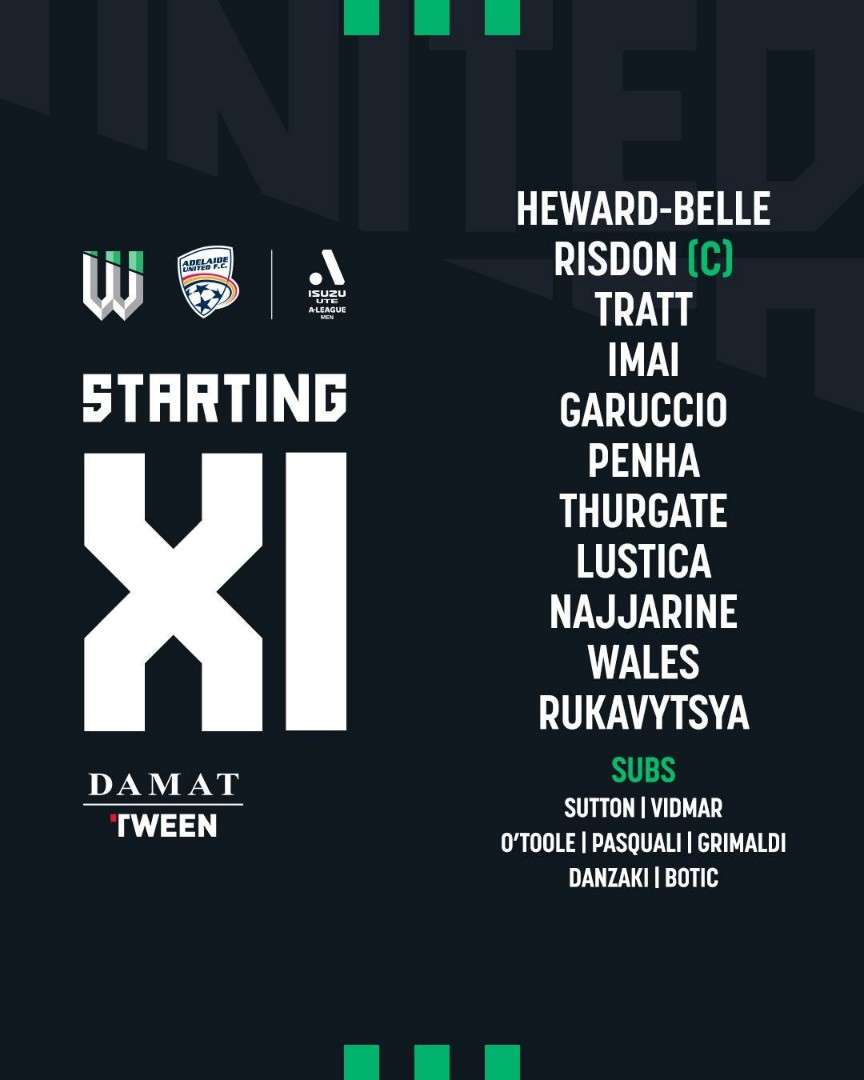 西部联vs阿德莱德联首发:伊兰昆达PK佩尼亚 哈洛兰出战