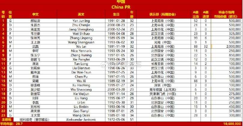 博主:林良铭落选中韩之战大名单 韦世豪和李磊互换号码