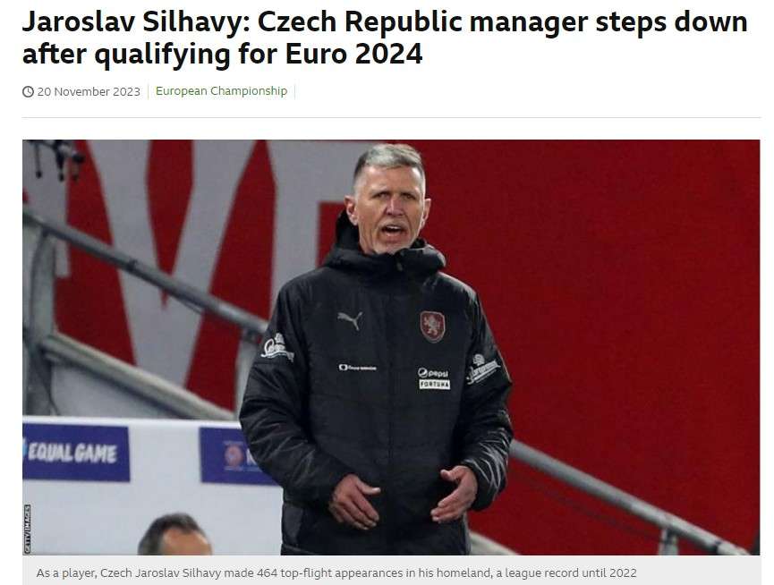功成身退!捷克确保欧洲杯正赛资格后 主帅希尔哈维辞职