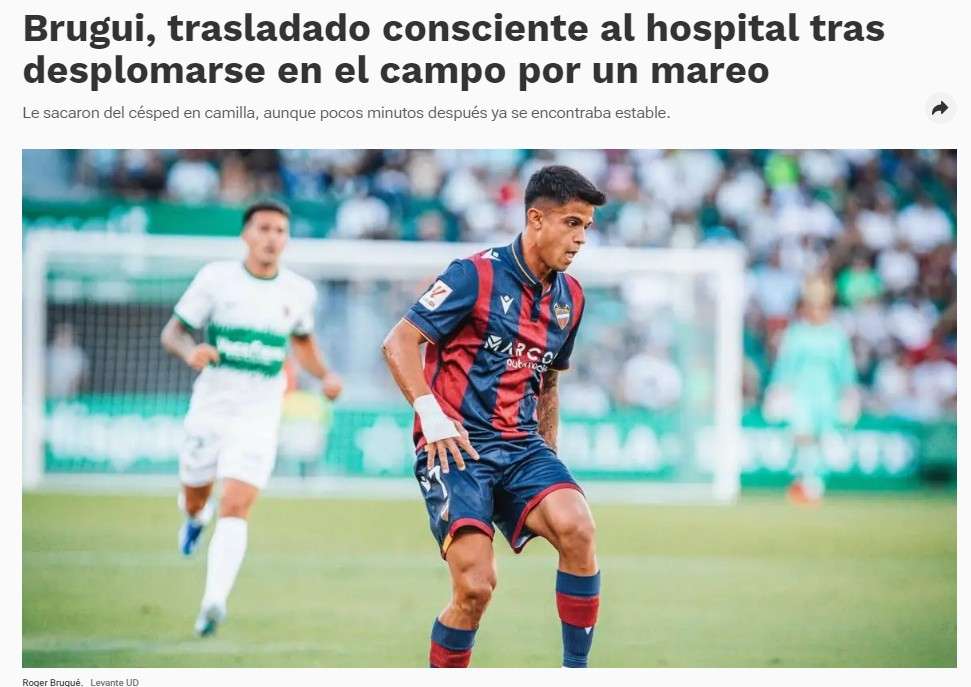 又一人!莱万特球员布鲁吉比赛中昏迷不醒被紧急送医