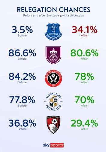 降级悬念重启!埃弗顿被扣除10分后降级概率飙升30%