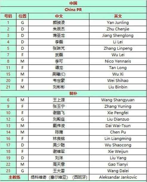 国足vs泰国首发:韦世豪先发出战 谭龙、武磊在列