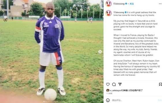 前阿森纳、巴塞罗那球星亚历山大·宋在个人社媒宣布退役