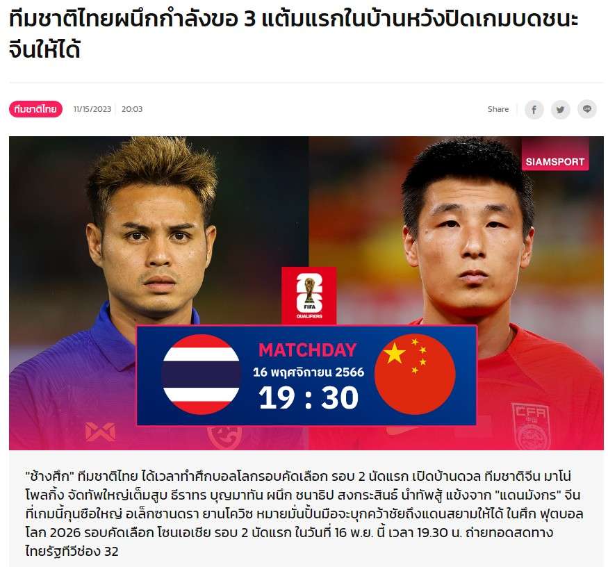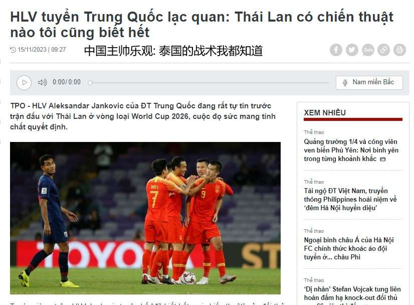 越媒关注中泰之战:中国主帅称自己了解对手所有战术