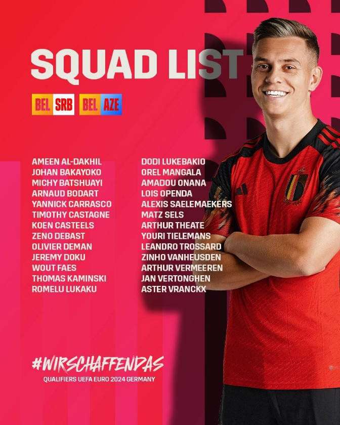 比利时新一期大名单公布:卢卡库领衔 多库、特罗萨德在列