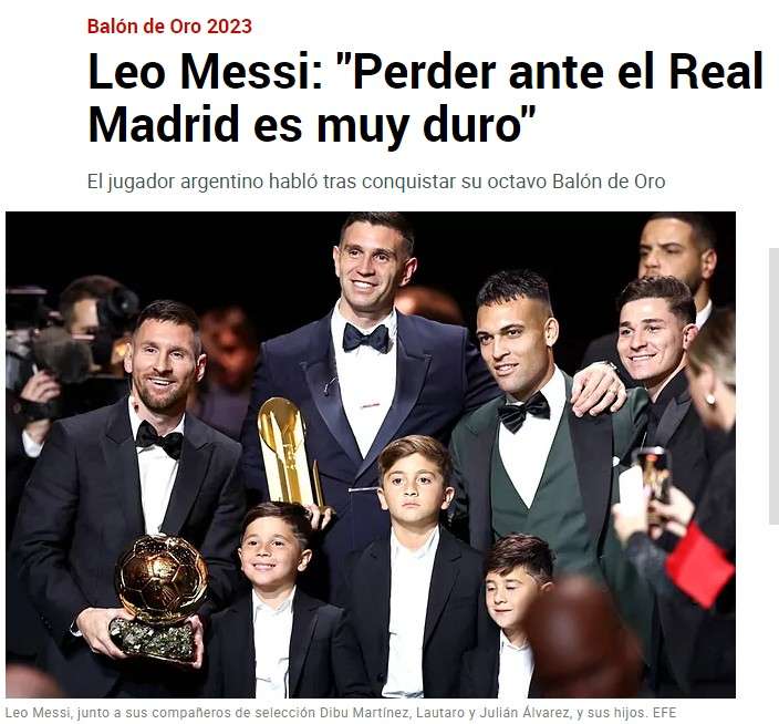 梅西获金球奖引发反应:队友称百年内无人超越