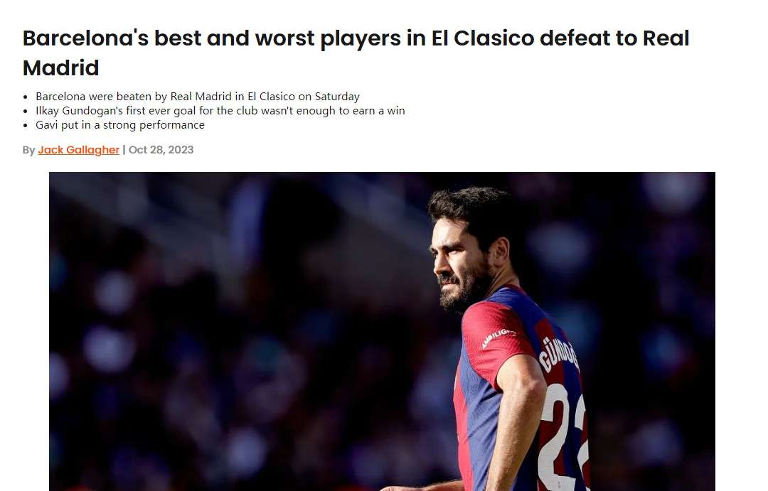 英媒对巴萨球员在国家德比评分:加维京多安最高分 费兰和坎塞洛最差