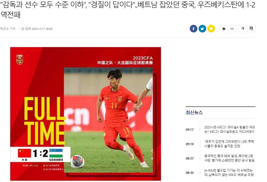 韩媒:史上最差的中国队+三流教练执教 凭什么痴心妄想进世界杯