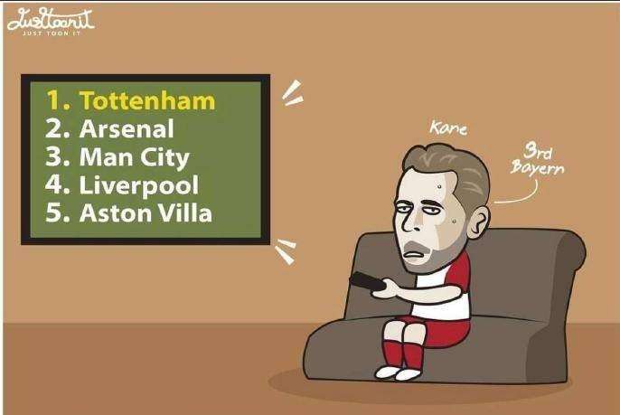 英超漫画:凯恩看到英超积分榜 脑袋瞬间嗡嗡作响