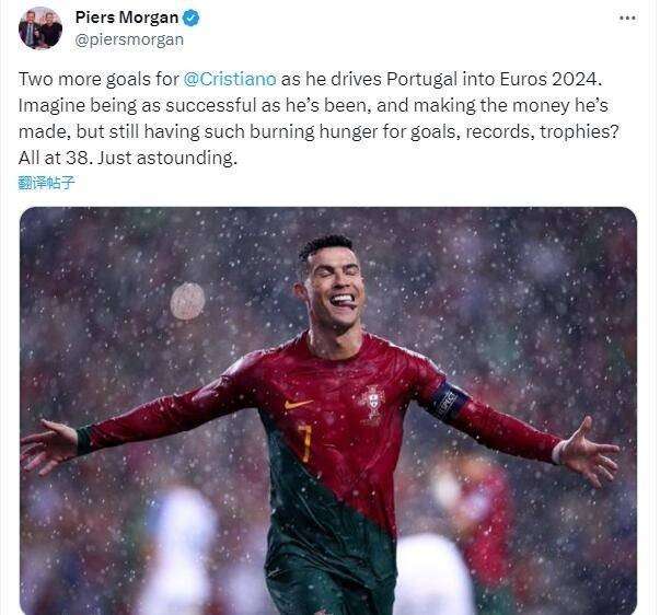 摩根:38岁又那么成功 谁还能像C罗那样如此有饥渴感?
