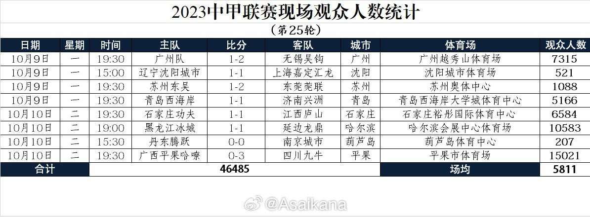 中甲第25轮现场观众人数统计:广西平果哈嘹vs四川九牛15021
