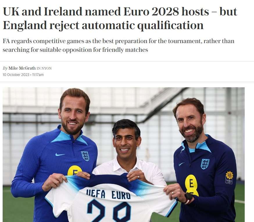 英格兰主动申请参加28年欧洲杯预选赛:欲让英伦5队全晋级