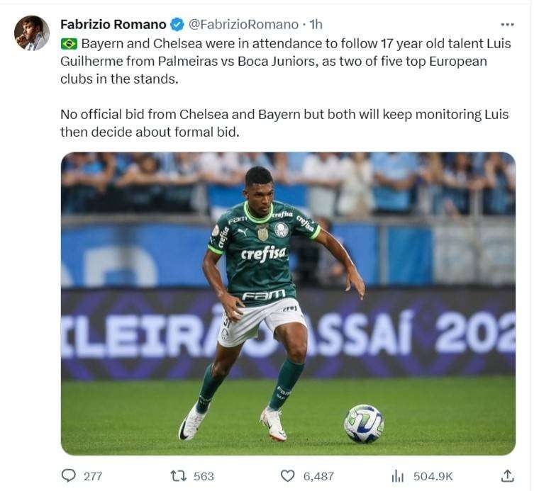 又是一个天才巴西小妖?罗马诺:拜仁和切尔西正在密切观测中