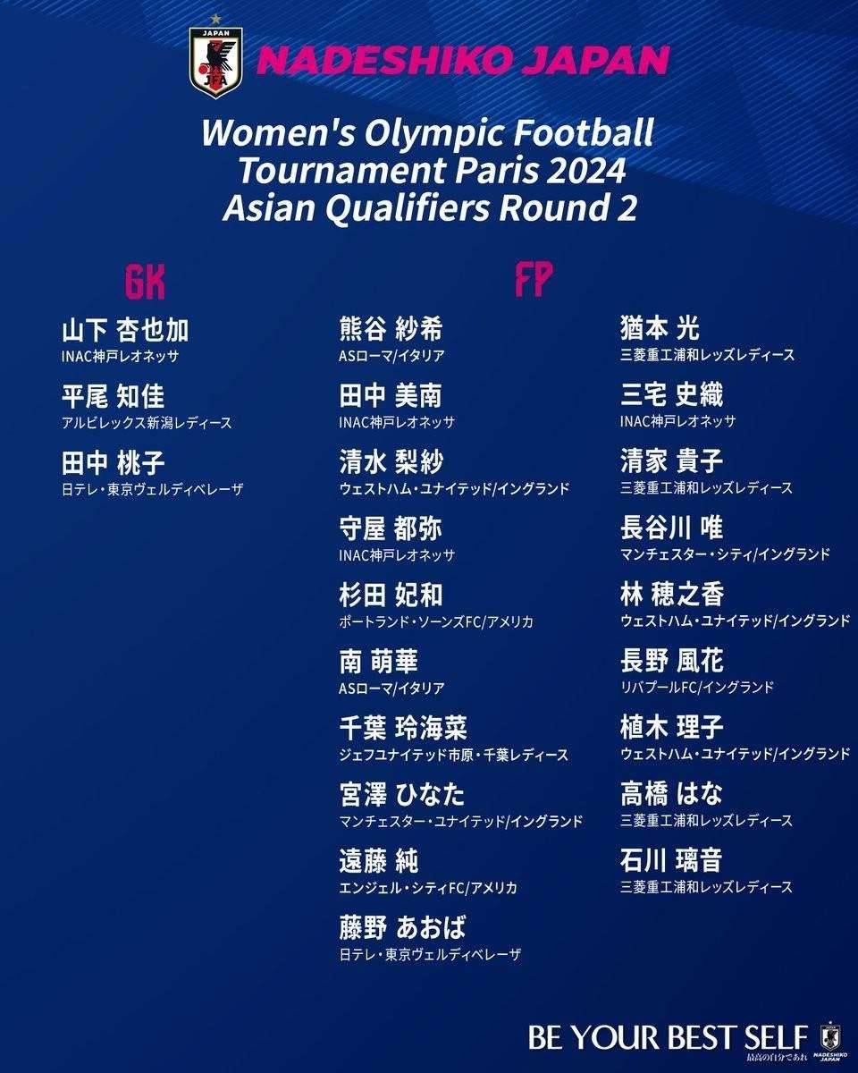 日本女足奥预赛大名单:田中美南、宫泽日向在列