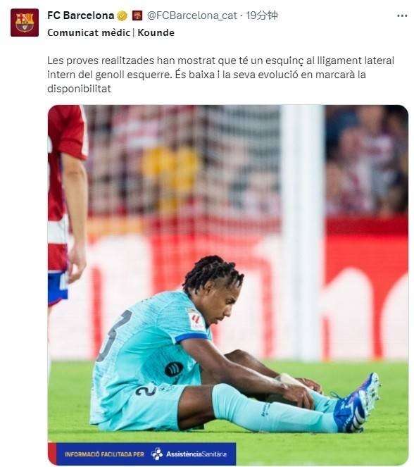 官方:孔德左膝内侧副韧带扭伤 很可能无缘国家德比