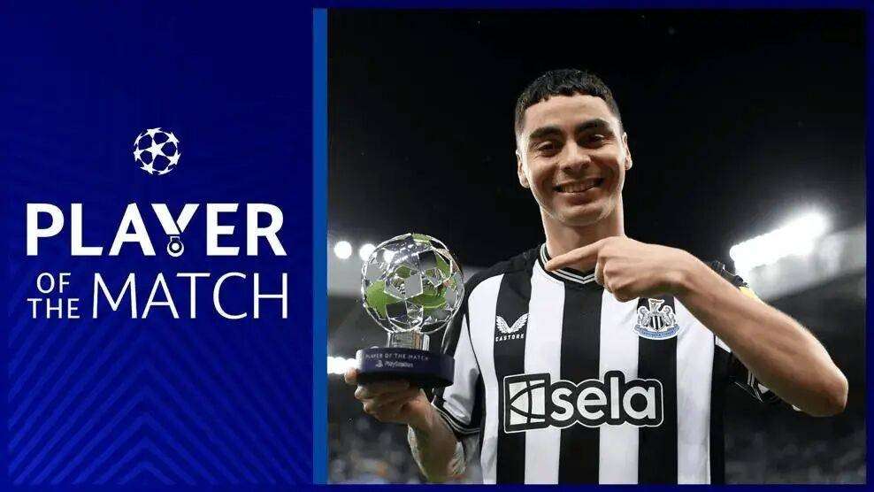 欧足联官方:阿尔米隆当选纽卡4-1巴黎圣日耳曼全场最佳球员