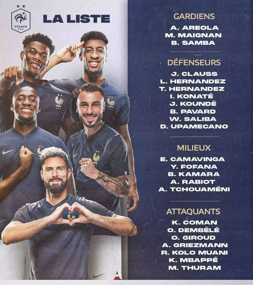 法国国家队公布最新一期大名单:姆巴佩领衔 登贝莱、吉鲁在列