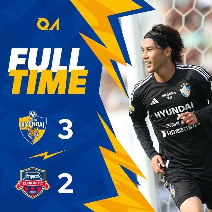 蔚山现代客场3-2击败水原FC 提前锁定本赛季韩K联常规赛冠军