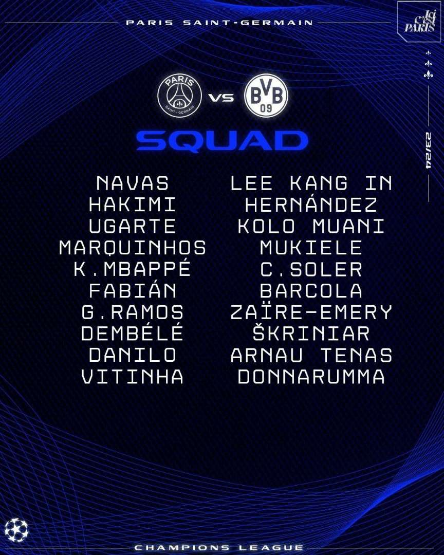 巴黎公布对阵多特大名单:姆巴佩、李刚仁在列 阿森西奥缺阵