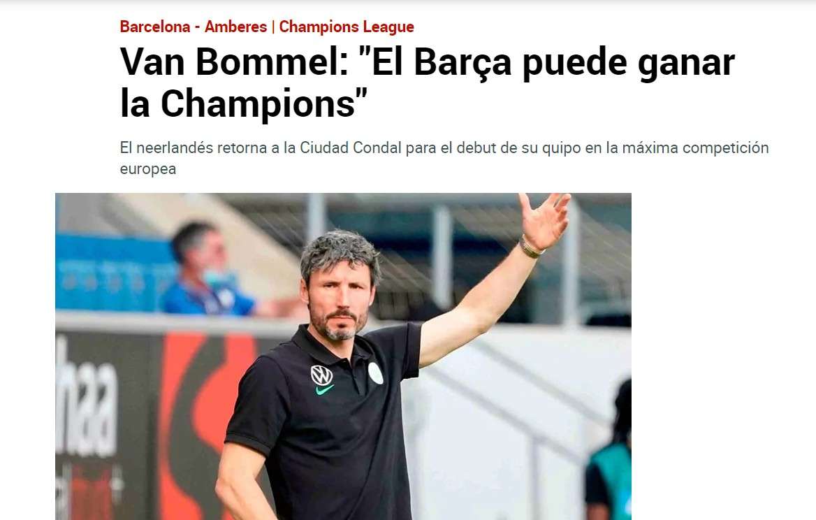 范博梅尔:巴萨的锋线是全欧最强之一 他们能赢得欧冠冠军
