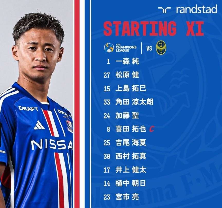 横滨水手vs仁川联首发:水手大幅轮换 外援均替补
