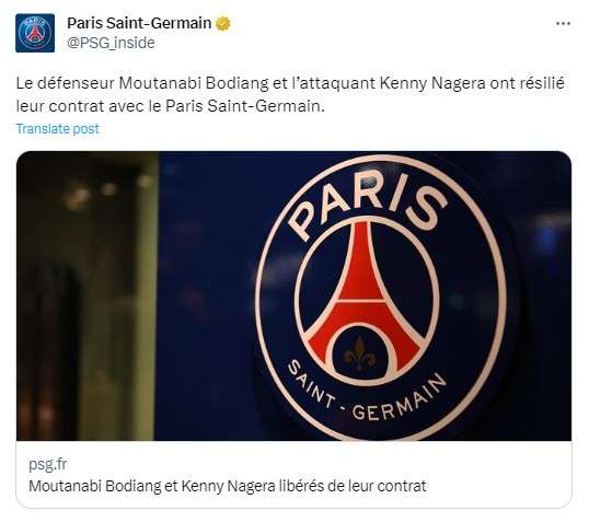 不练小妖了?官方:大巴黎与两名00后小将博迪昂和纳格拉解约
