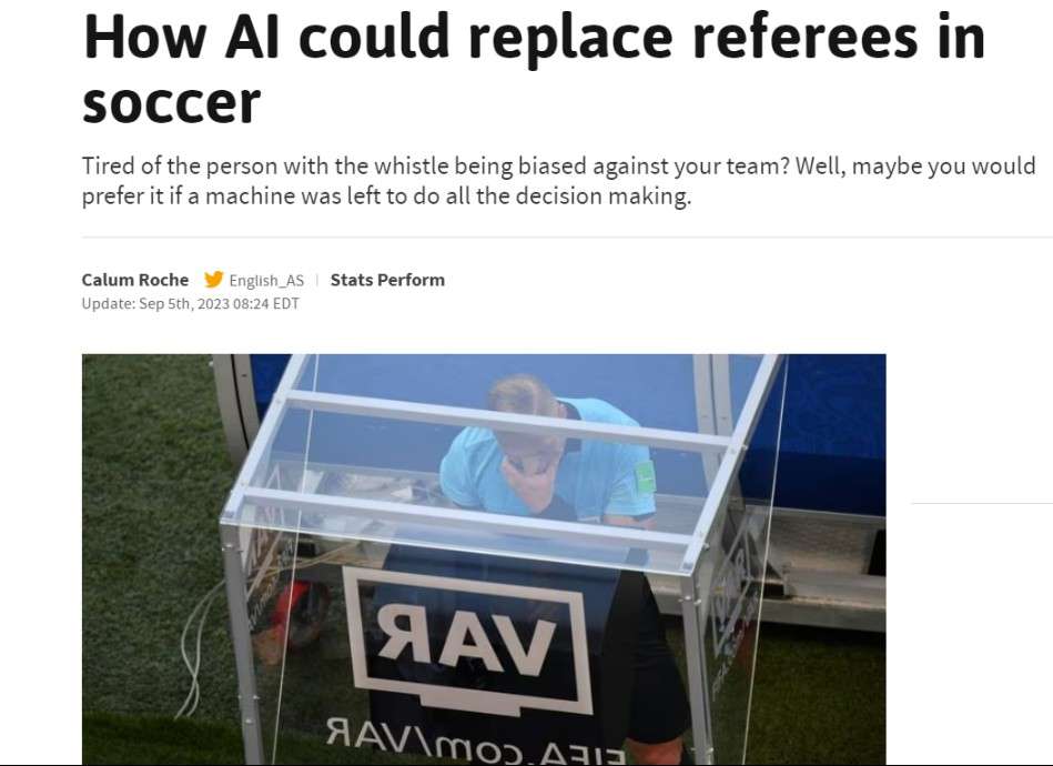 专家:人工智能首先会取代边裁 三十年后或由机器人执法比赛