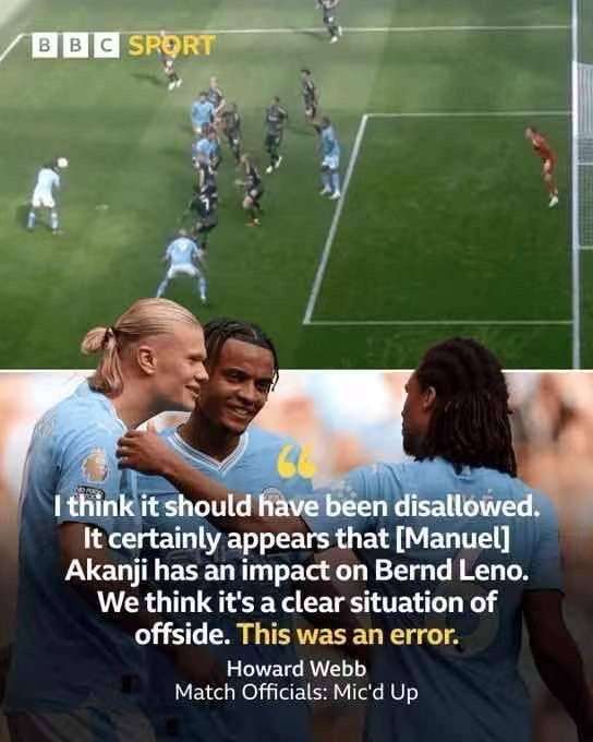 英超官方:阿克对阵富勒姆的进球应判无效 阿坎吉干扰莱诺