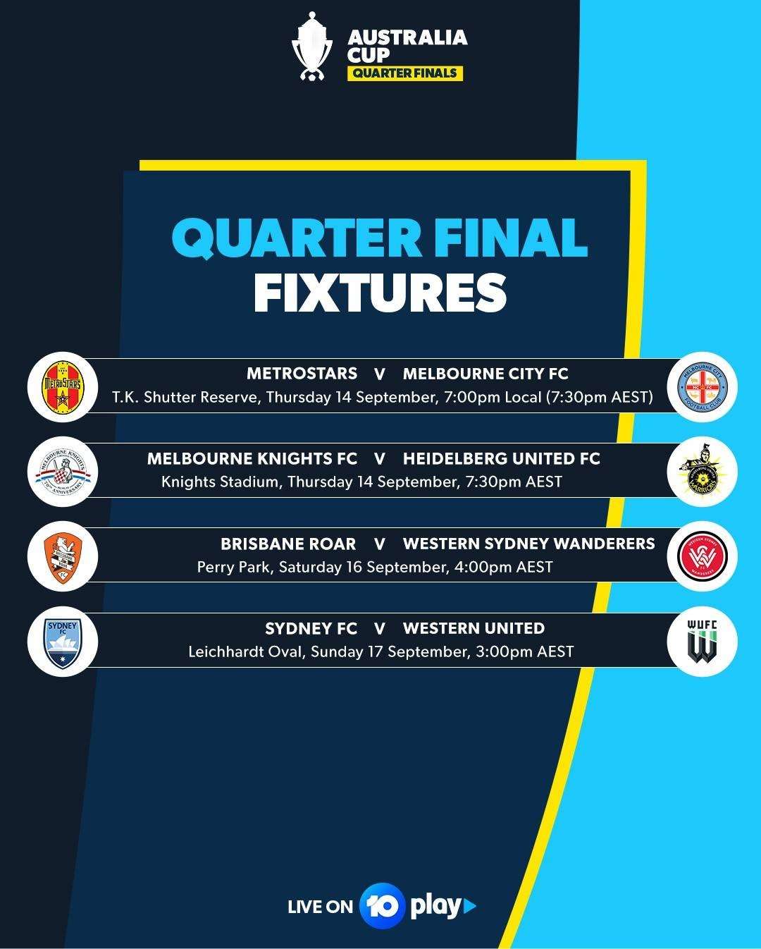 澳足总八强对阵公布:墨尔本城客战地铁之星 悉尼FC主场对阵西部联