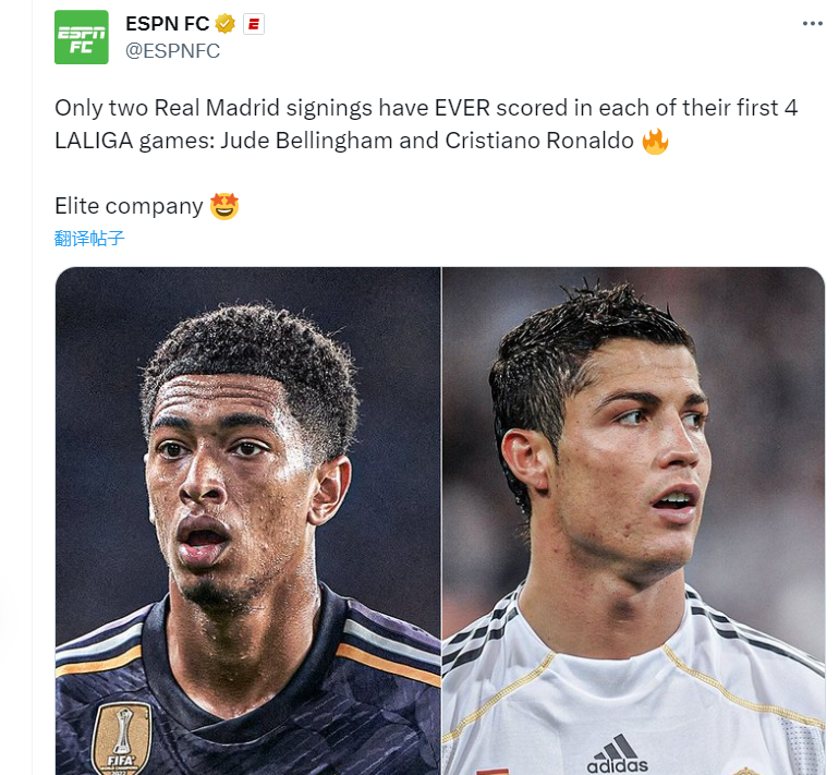 追平C罗纪录!贝林厄姆成为皇马史上第二位前4场西甲均破门的新援