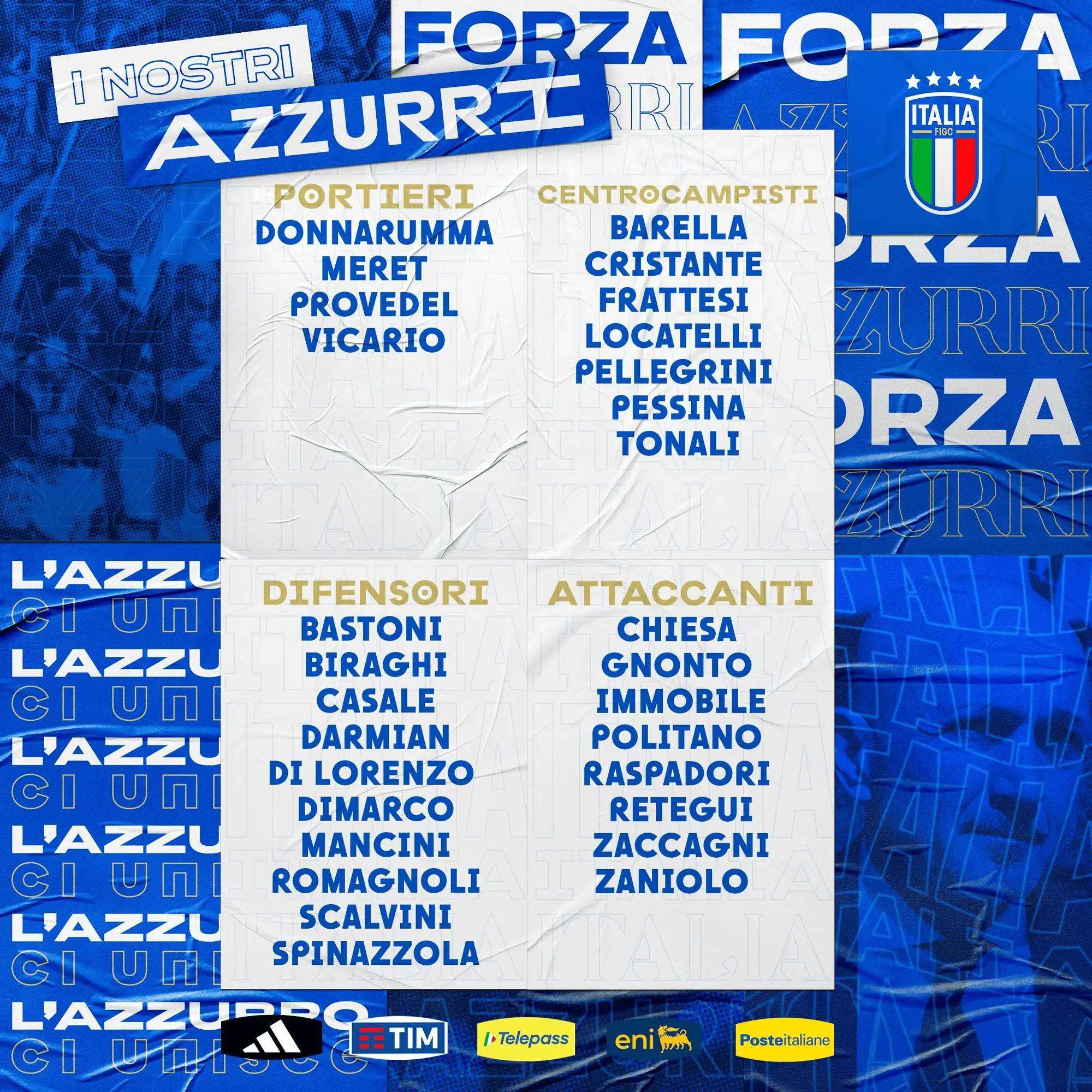 意大利公布大名单:雷特吉、基耶萨在列 维拉蒂落选
